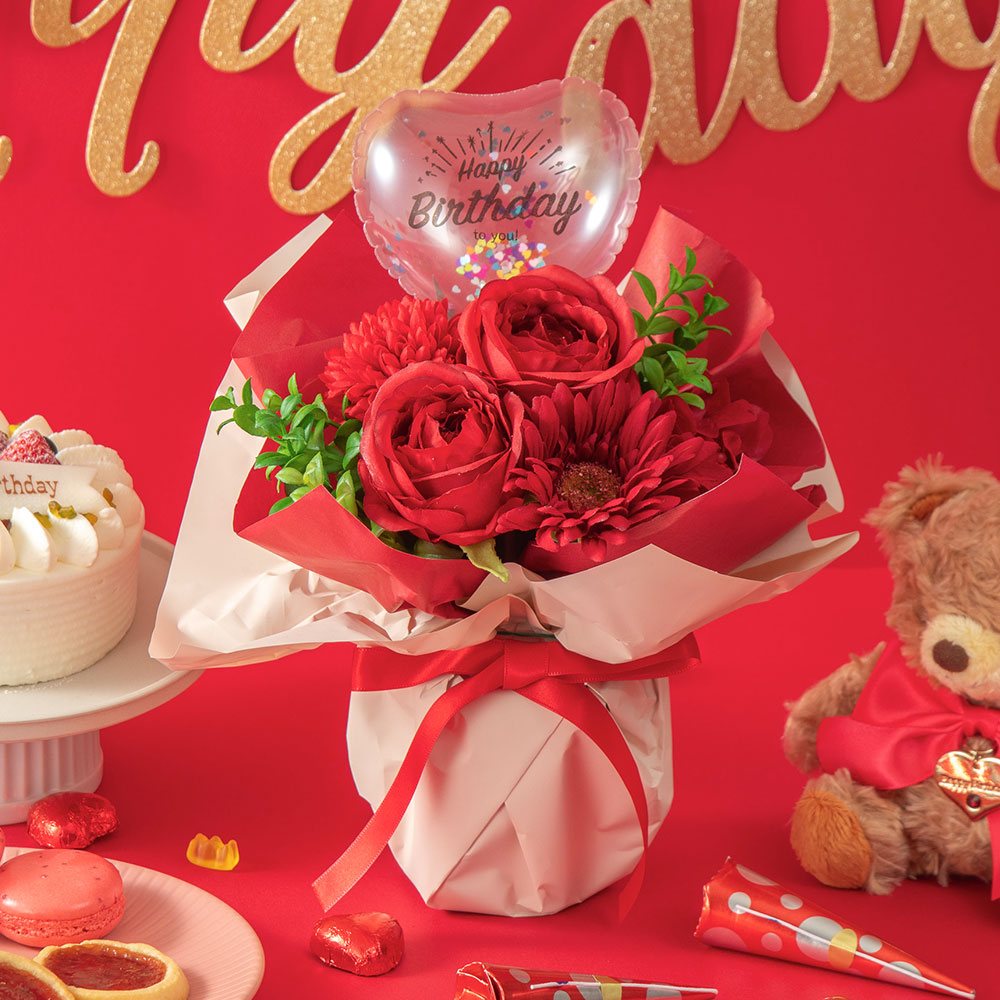 そのまま飾れるバルーンブーケ(レッド・ピンク)【沖縄届不可】