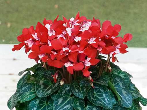 冬の鮮やかなお花なので家族みんなが集まるところで鑑賞してもらいたいです。シクラメンは光と風(風通し)が必要な植物なので、人間が寝るときは、シクラメンも雨が当たらない軒下など涼しいところで休ませてあげてくださいね。