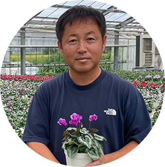 根本園芸は、東北地方の太平洋側に位置し、比較的温暖な気候に恵まれた地で花作りを行なっています。先代から数えて50年以上、現在は二代目として根本雄二さんが、シクラメンを中心に栽培しています。